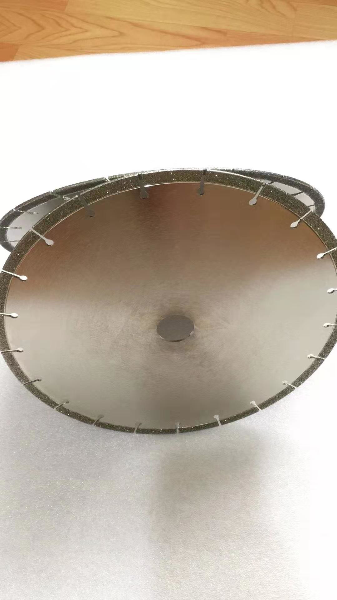 Elmas kesme bıçağı tekerlekleri elektrolizle kaplanmış ve nikel kaplanmıştır. Elektrokaplama diğer uygulamalara göre birçok avantaj sunar. Diğer uygulamalara göre daha agresif bir bağ oluşturur ve bir formu daha uzun tutacaktır. Ayrıca daha yüksek talaş kaldırma oranı uygular ve birkaç ay sürecektir. Yalnızca Sert Malzemenin bilenmesi için tasarlanmıştır ve diğer uygulamalar için kullanılmamalıdır.