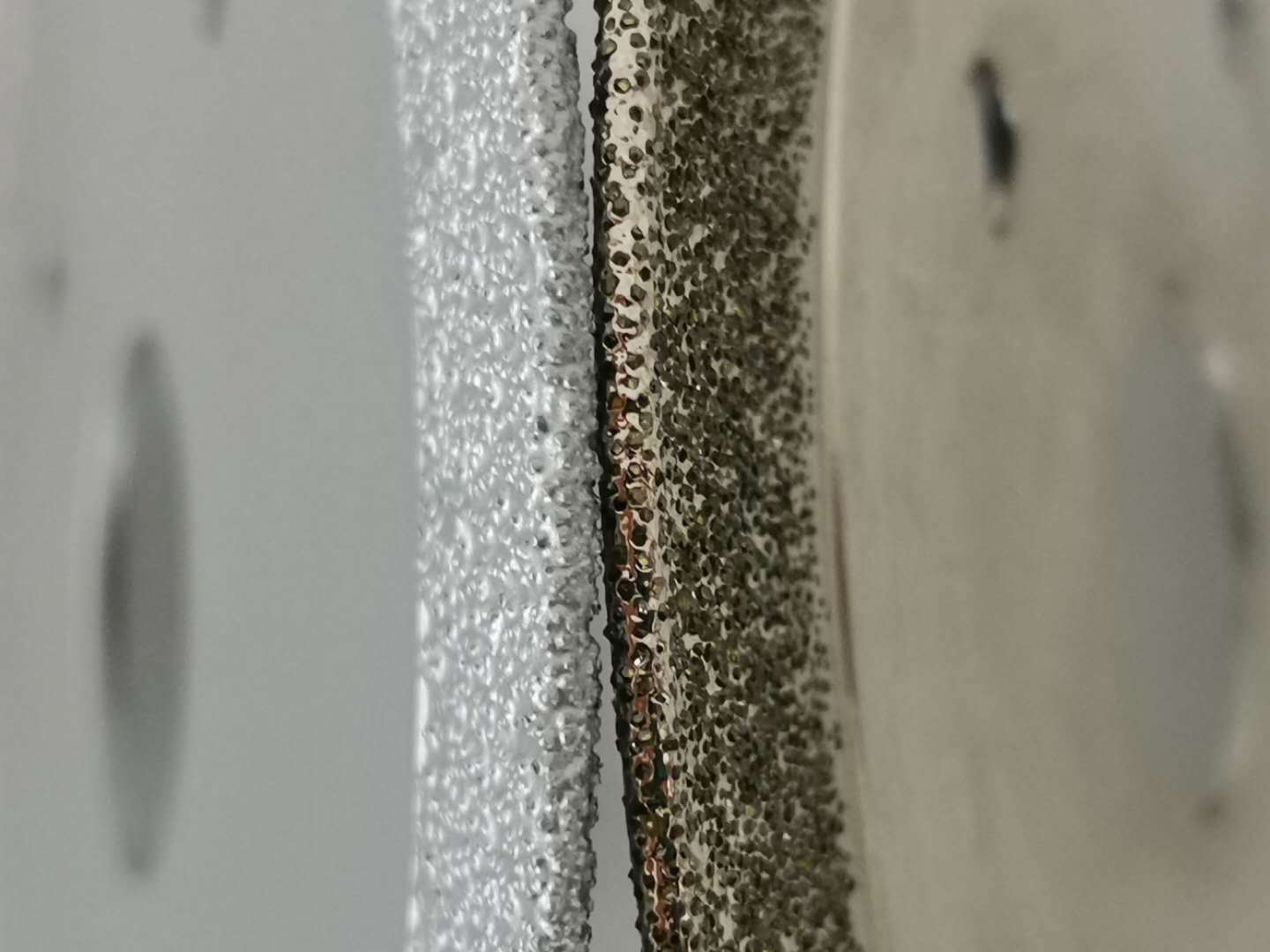 Elmas lehimleme testere bıçağı elmas yüzey metalleştirme teknolojisini benimser, aktif dolgu metali veya nikel bazlı dolgu metali ile kaynak elması, güçlü karbür ile eleman veya alaşım oluşturur, böylece elmas ve takım matrisinin metalurjik kimyasal kombinasyonu gerçekleştirilir, kontrol kuvvetini büyük ölçüde iyileştirir. Elmas elmas testere bıçağı seramik, mikrospar, yapay taş, mermer, süper keskin kesmek için uygundur.