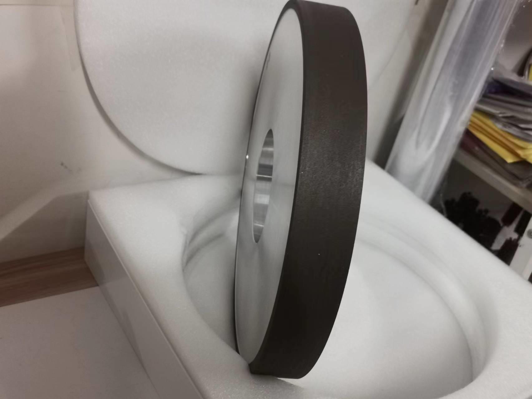 reçine bağlanmış elmas öğütme tekerleği, esas olarak volfram karbidinin, seramik malzemelerin, manyetik malzemelerin, silikon malzemelerin, termal püskürtme alaşım malzemelerinin ve benzeri işlemlerinde kullanılır.